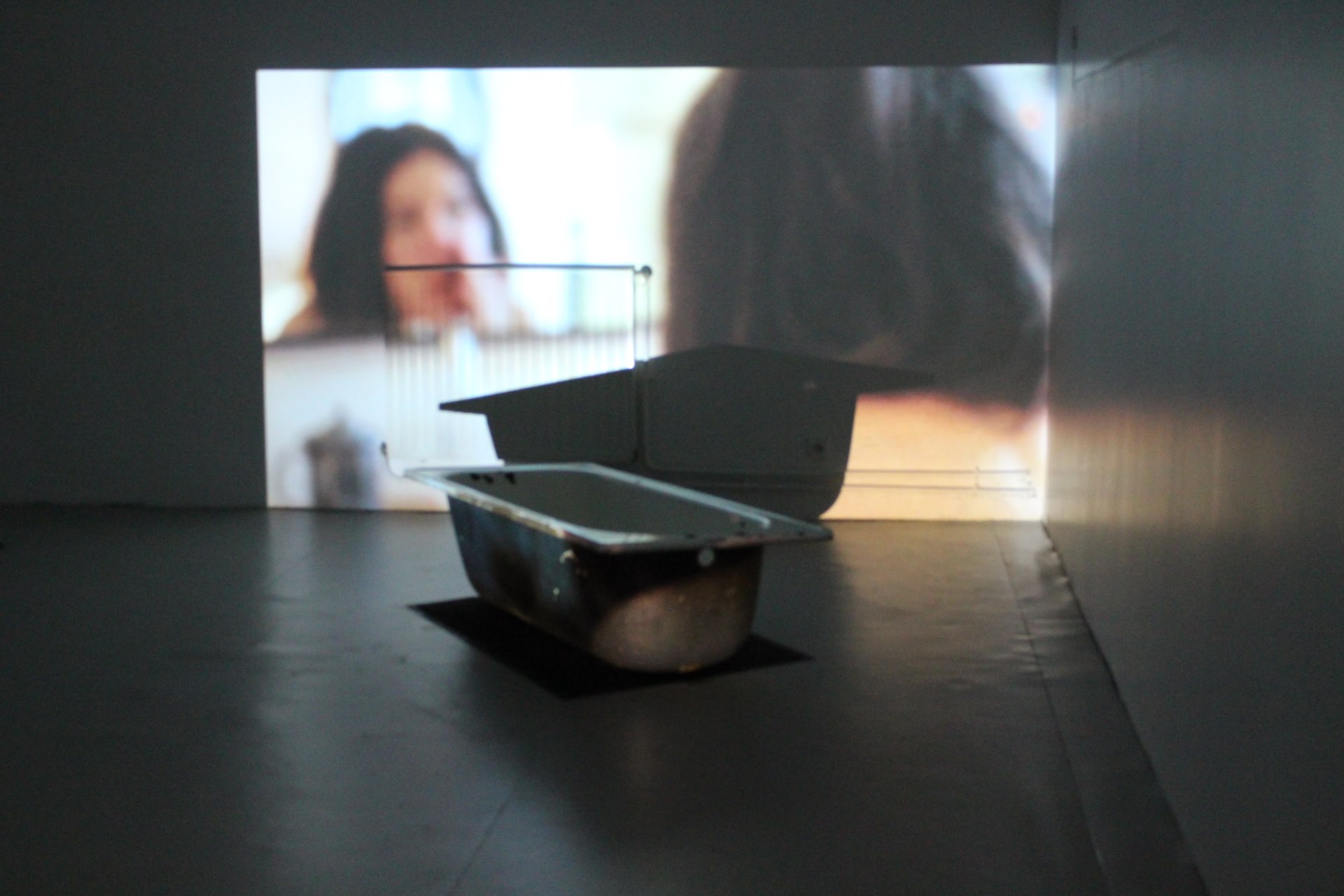 Dans cette forme lecture et installation de La vie est courbe, le son, la lumière et la vidéo-projection plongent les spectateurs en immersion dans l’univers à la fois familier, indiscret et inquiétant de la salle de bains. Une baignoire, seul élément de décor, occupe le centre d’un espace neutre, tantôt baigné de lumière, tantôt plongé dans l’obscurité. Le travail des voix, associé à la scénographie, produit de multiples effets d’échos, de réponses et de dédoublements. Y a-t-il une ou plusieurs paroles ? Un ou plusieurs personnages ? D’où proviennent ces voix ? Il s’agit par ce dispositif de permettre au spectateur de se perdre dans ces questionnements.